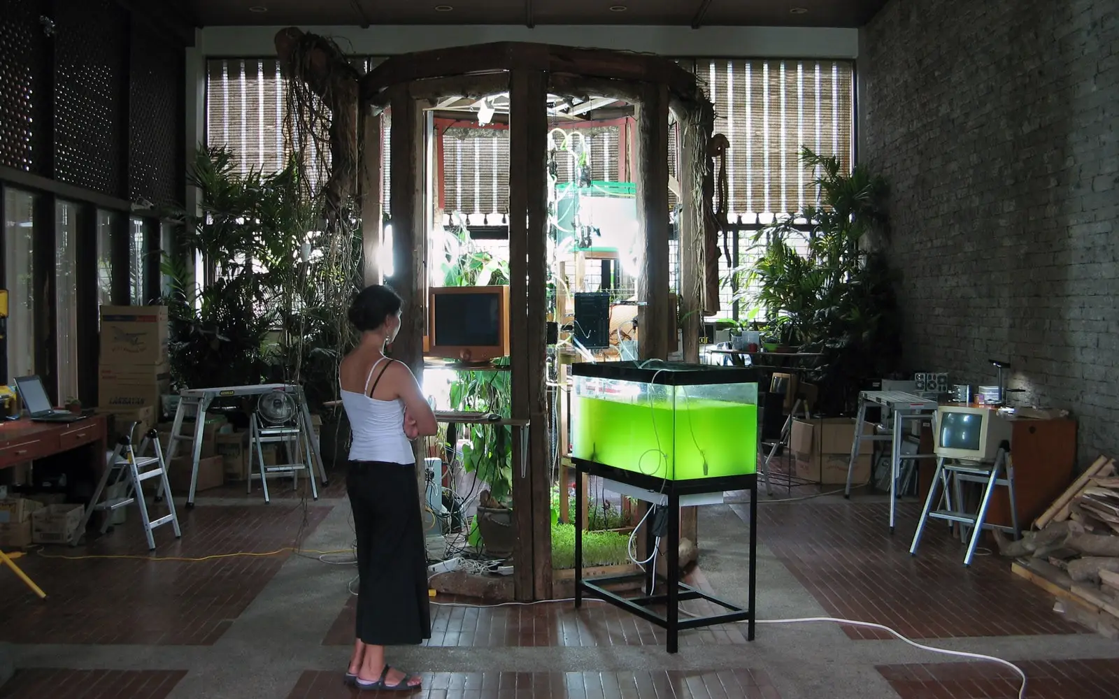 [Diego] Biomodd was the brainchild of artist and scientist Angelo Vermeulen. The very first Biomodd, Biomodd [ATH1], was initiated by Angelo during an artist residency at The Aesthetic Technologies Lab at Ohio University’s College of Fine Arts in Athens, Ohio between September 2007 and January 2008. It was the first time that heat originating from computer electronics was used to boost the growth of an enclosed ecosystem. When I first came across Biomodd, I was immediately struck by the complexity and elegance of its multi-system symbiosis. With the support of my institution, the University of the Philippines Open University, I invited Angelo to build the next iteration of the project in the Philippines. Because the bioarts scene (and certainly the bioarts x technology scene) in the Philippines at that time could at best be described as nascent, and because I myself was somewhat of an outsider in the visual arts scene in the Philippines, it took a while to mobilize support or interest from the major galleries and cultural institutions. We ended up crowdsourcing talent and support to a great extent in order to make the project possible. When we finally exhibited Biomodd [LBA2], we listed over a hundred co-creators, contributors, and supporters in the final acknowledgement board. In short, Biomodd [LBA2] only happened because of the widespread mobilizing and integration of intellectual, cultural, and social capital. I think the path that Biomodd took from [ATH1] to [LBA2] traced a trajectory that since then tended to center on collaboration and community engagement.