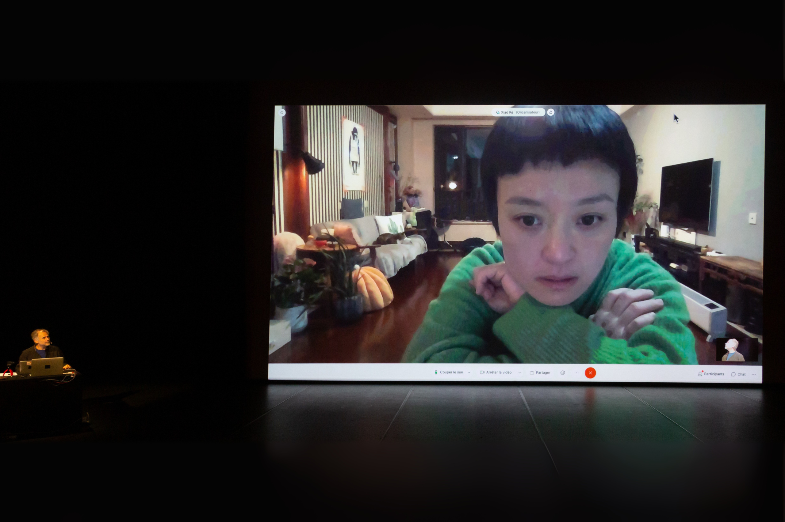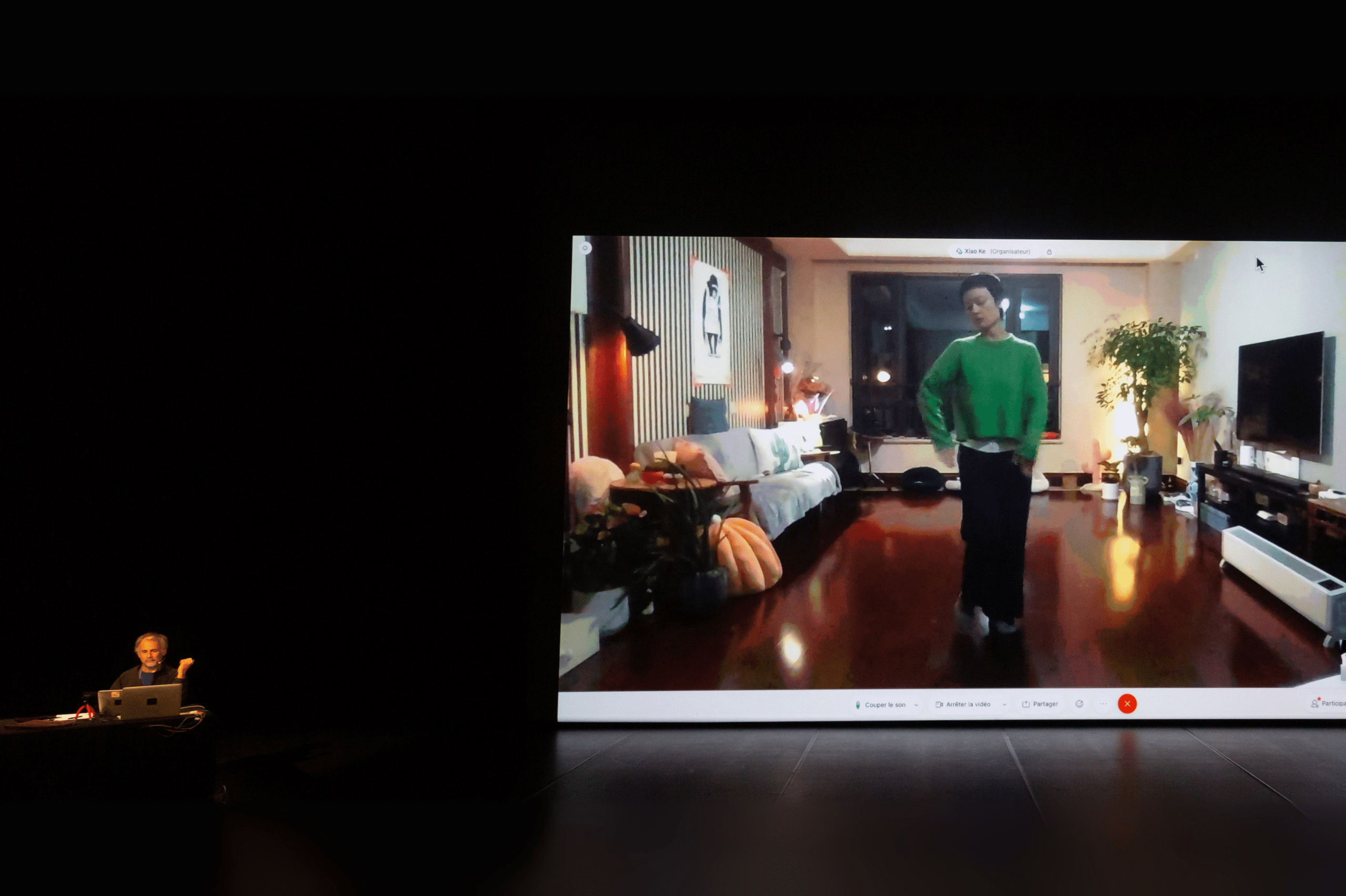Another interesting thing is that the work ‘Xiao Ke’ has two versions. One is my monologue performance on stage, where I speak Chinese. This version was performed in Chinese-speaking cities from 2020 to 2023. The other version is in Europe, where Jérôme is on stage, I am at home in Shanghai, and the audience is in the theatre, watching the real Jérôme and the giant screen showing me, my living room, and my cat. This version has been performed many times in different theatres across Europe. For me, every late-night performance at home for the live European audience was a magical experience. I was alone with five cats, with no audience around me, feeling like a sleepless madman—talking, dancing, crawling, and falling. But thousands of kilometres away, a group of people are sitting in a theatre, watching me intently. I can’t hear the audience’s feedback, so every time I direct Jérôme Bel, who is sitting on stage helping me with translation, to turn the camera towards the audience so I can see them. Every time, the audience is particularly enthusiastic, perhaps because they know I can’t hear their applause. They clapped enthusiastically each time, hoping to send their applause all the way to my home in Shanghai. This ‘not being together’ yet ‘being together’ experience is truly fascinating. It also makes me reflect on the future possibilities of the theatre and its core value. I believe that for both Jérôme and me, we are constantly learning and redefining our preconceived notions through these concrete practices.