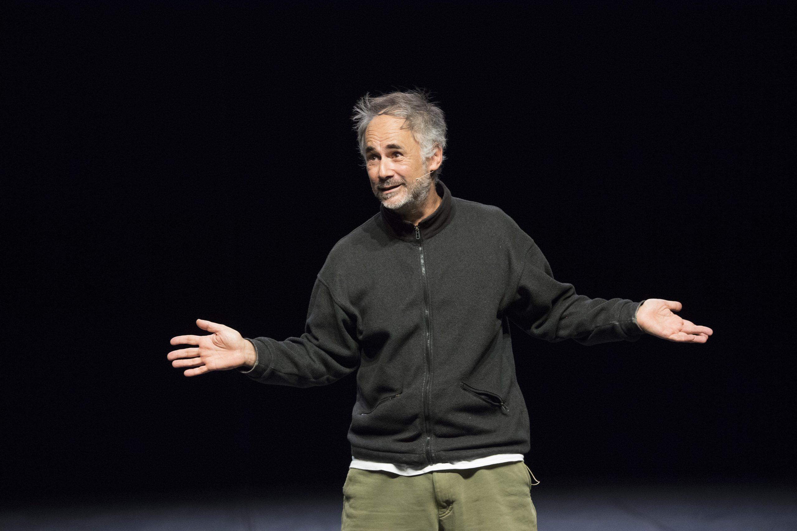 Alongside these videoconference rehearsals, I wondered how I could take things further. I was thinking about it and suddenly I realised that the most environmentally friendly shows were plays. Indeed, to put on a play by Chekhov, for example, or Shakespeare, all you need is the translated text, to hire local actors, and to stage the show. There’s no need to bring in actors from Moscow or London! I then thought of a play that could be staged by anyone in the world in their own language. All you would need to do is perform a character named Jerome Bel, who would be 57 years old and a choreographer, with a daughter, and who would be a relatively ordinary, quiet person, not particularly difficult to portray. That’s how I wrote my auto-bio-choreography, where the character sits quietly at a table and gives a lecture on his work, reading the text easily from his computer, without any kind of dramatization. Easy! Moreover, in contemporary theatre, the audience no longer has a problem if, for example, Hamlet is played by a woman or a person of color… That’s why Jérôme can be played by a Chinese woman without any problem. I find it even more exciting!