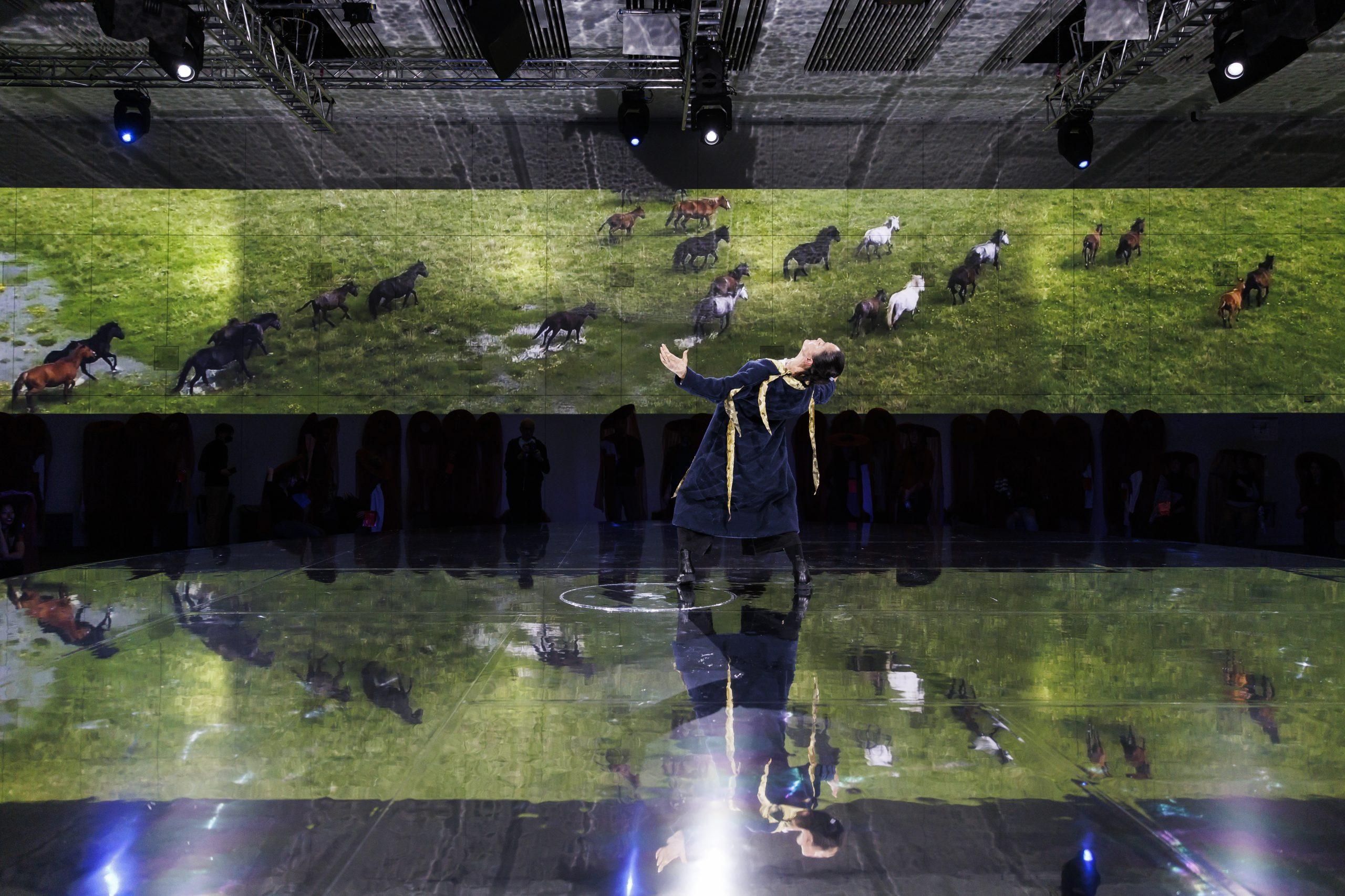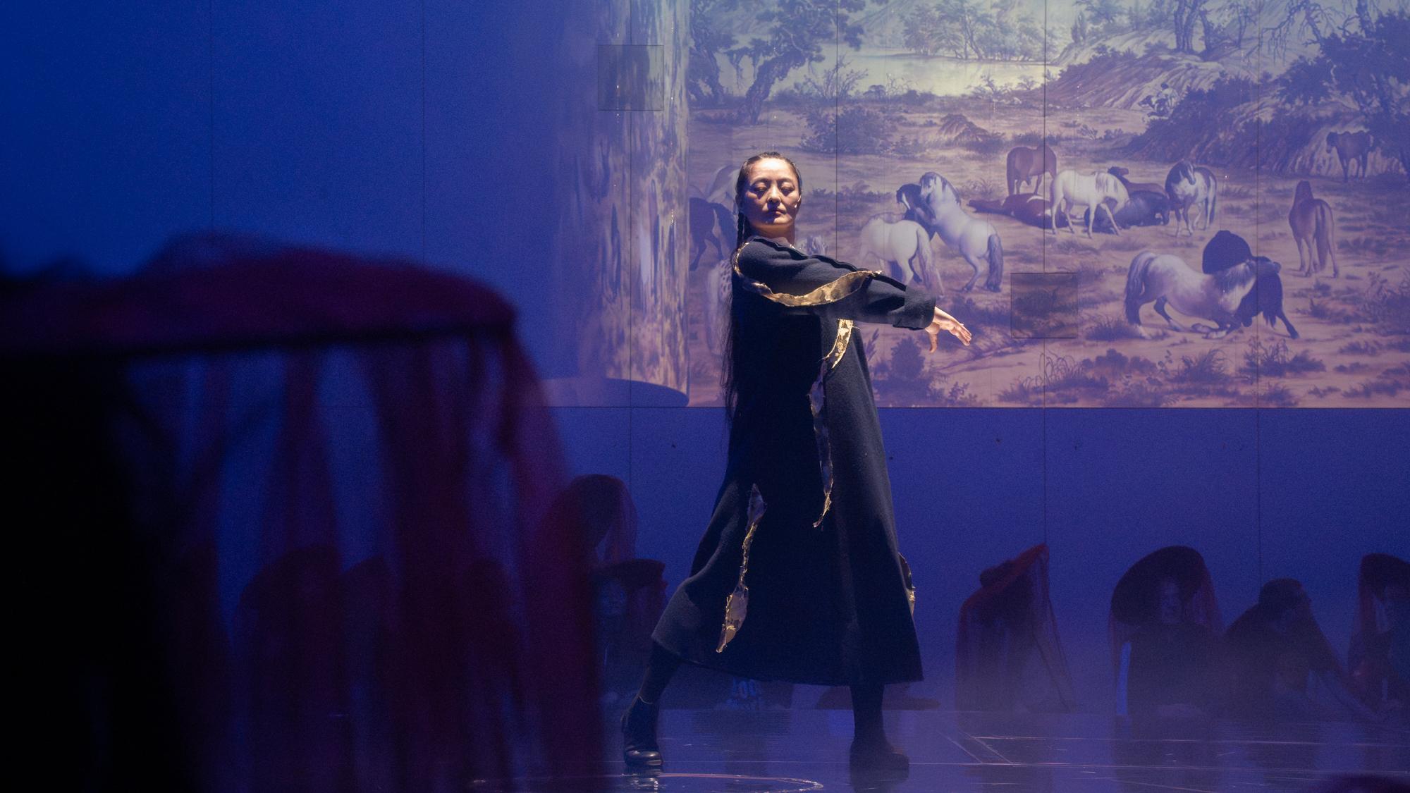The Foe of an Arrow Wound is a research theatre piece that enters from a pictorial perspective. It begins with an 18th-century painting, ‘The Hacking of the Mask’, from the collection of the Museum für Asiatische Kunst, Staatliche Museen zu Berlin (East Asian Museum, Staatliche Kunst Museum, Berlin). The painting, by the Italian painter Lang Shining, was commissioned by the Qing Emperor Qianlong and is part of a series of paintings of the war to pacify Junggar. It is a combination of Western realistic modelling and traditional Chinese ‘literati painting’ aesthetics. The painting was originally housed in the Ziguangge of the Forbidden City in Beijing, but when the Eight-Power Allied Forces occupied Beijing in 1900, the painting went to Germany, where it is now stored in Berlin, exhibited from time to time in the Humboldt Forum (the former Prussian Royal Palace).