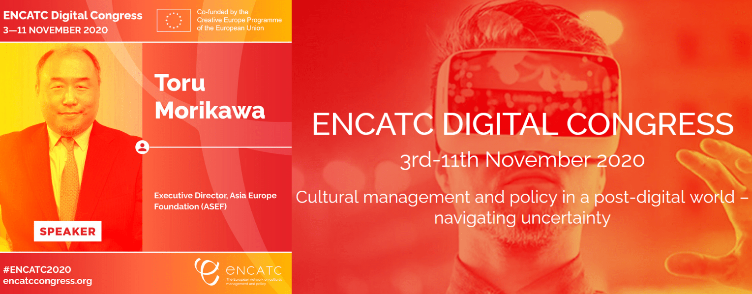 ASEF Executive Director Mr Toru MORIKAWA spoke at the 2020 ENCATC Digital Congress on “Cultural management and policy in a post-digital world – navigating uncertainty” on 3 November at 2:40 – 3:30 PM CET / 9:40 – 10:30 PM SGT.