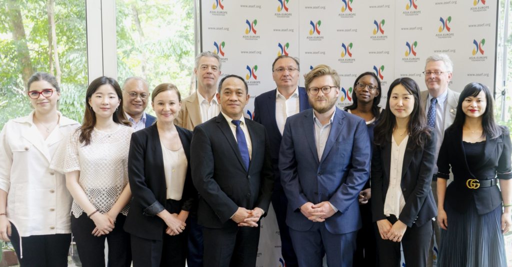 Ms Iulia LUMINA, Project Officer at ASEF; Ms Youngmi LEE, Researcher, ASEM Global Ageing Centre (AGAC); Mr Bernie CANDOLADA, Minister & Consul General, Embassy of the Philippines in Singapore; Ms Armi AARNI, Project Manager at ASEF; Mr Henri PLAGNOL, Conseil d’Etat, French Ministry for Europe and Foreign Affairs; Mr Achsanul HABIB, Director for Human Rights & Humanitarian Affairs, Ministry of Foreign Affairs of Indonesia; Dr Yannick BINEAU, Associate Director of the Governance & Economy Department, ASEF; Mr Eric LINDNER-OLSSON, Political Officer, EU Delegation in Singapore; Ms Sandra LENDENMANN, Head, Office of Human Rights Policy, Federal Department of Foreign Affairs of Switzerland; Ms Sansae CHO, Researcher, AGAC; Mr Rolf RING, Deputy Director, Raoul Wallenberg Institute; Ms PU Xiaojun, Chinese Embassy in Singapore.