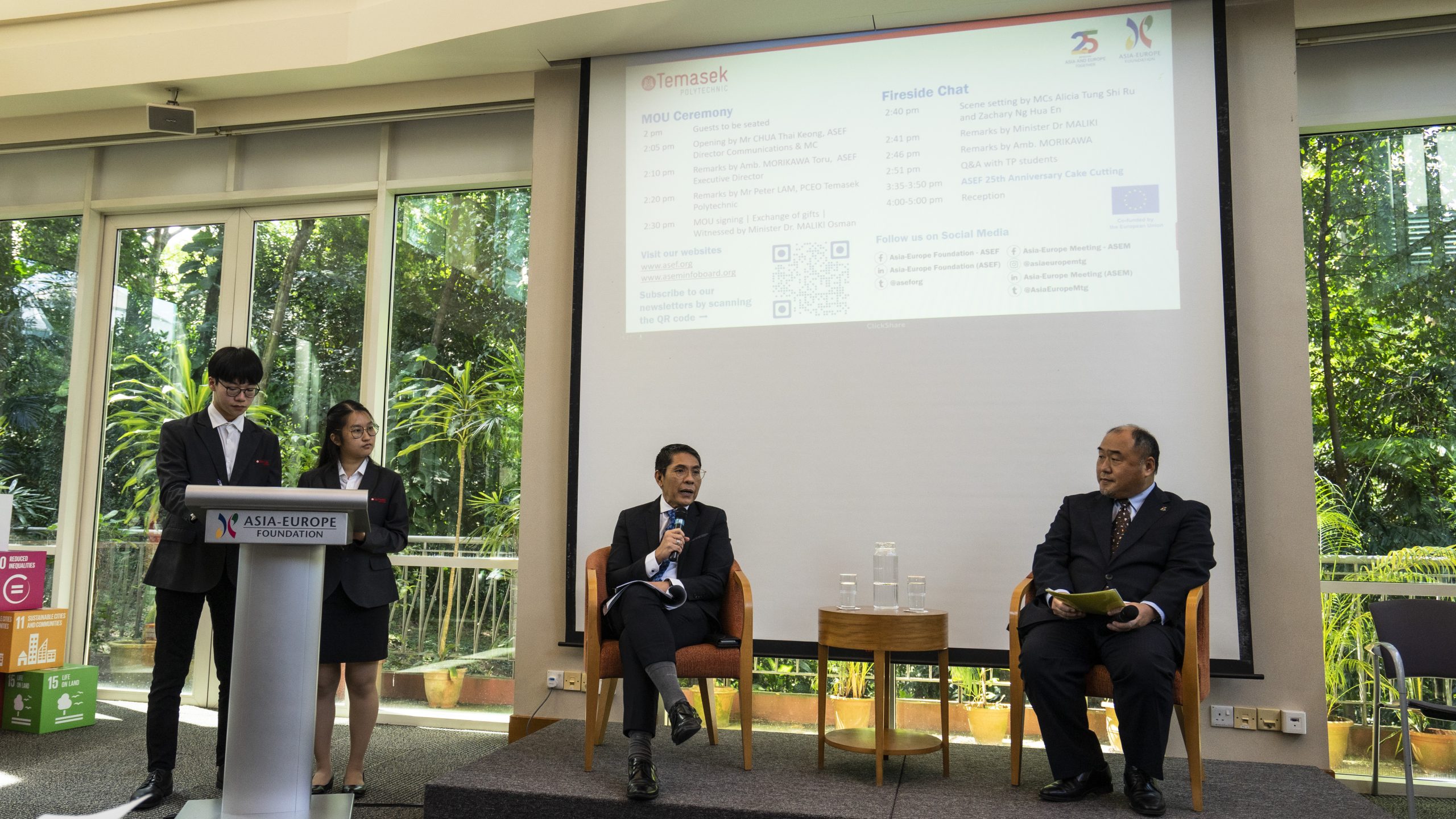 One of the first outputs of the MOU with Temasek Poly was the organization of a fireside chat between the students of Temasek Polytechnic and Minister Dr. MALIKI Osman, (Minister at Prime Minister Office, Second Minister for Education & Second Minister for Foreign Affairs), and Ambassador Toru MORIKAWA (ASEF Executive Director)