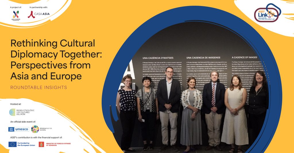 On 25 September 2025, the ASEF LinkUp Roundtable ‘Rethinking Cultural Diplomacy Together: Perspectives from Asia and Europe’took place at the premises of Museu Etnològic i de Cultures del Món in Barcelona, Spain, as a side event contributing towards MONDIACULT 2025.