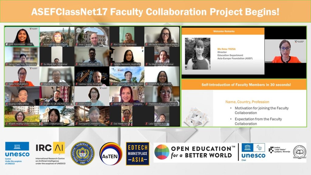 The ASEFClassNet17 Faculty Collaboration journey took off on Friday, 03 May 2024 with 34 academics, researchers and teacher trainers from 18 Asian and European Countries! With a thematic focus on Learning about AI and Learning with AI, the project is dedicated to fostering an inclusive, innovative, and supportive educational community.