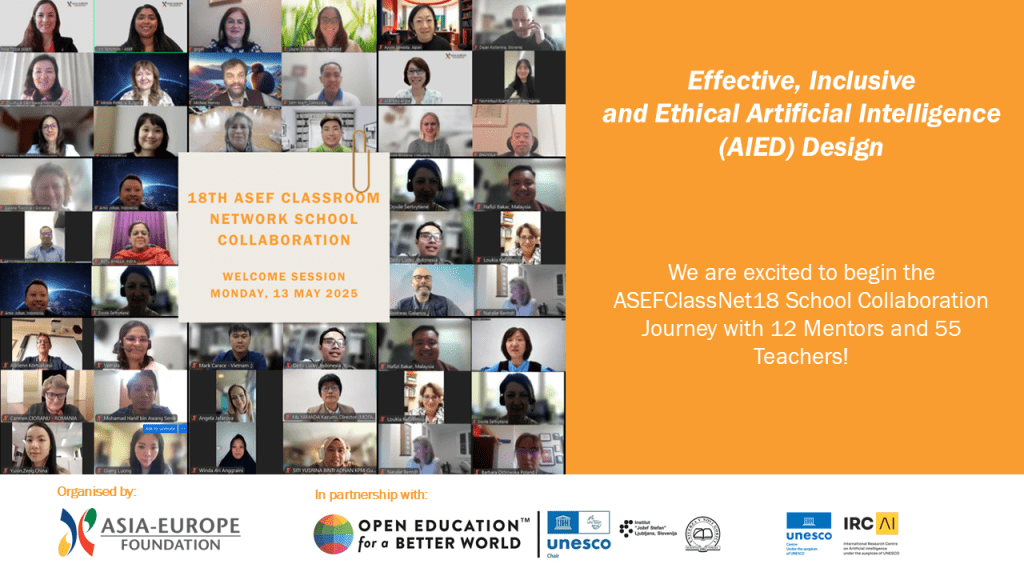 We are thrilled to launch the ASEFClassNet18 School Collaboration on “Effective, Inclusive, and Ethical Artificial Intelligence in Education (AIED) Design”! This year, 12 outstanding Mentors and 55 passionate teachers from over 30 countries across Asia and Europe are coming together to explore the future of AI in education. ASEF’s Deputy Executive Director, Mr ZHANG Lei warmly welcome the participants and shares an inspiring remarks. In his words: