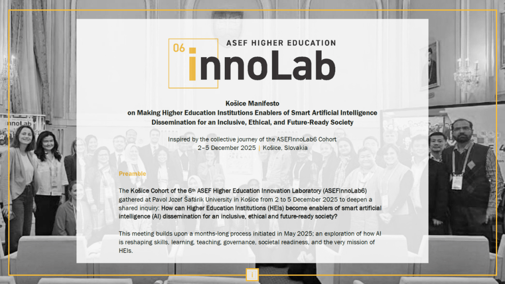 This question guided discussions during the 6th ASEF Higher Education Innovation Laboratory (ASEFInnoLab6) Conference in Košice held from 2-5 December 2025 at the Pavol Jozef Šafárik University in Košice, Slovakia. Bringing together more than 40 experts, academics, researchers, and higher education leaders from across Asia and Europe, the conference provided a space for participants to reflect on the evolving role of universities in an increasingly AI-driven world.