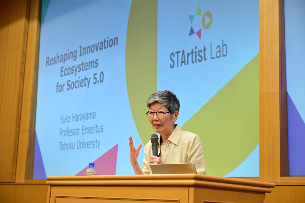 Marking the start of the Summit’s intellectual programme, Professor Yuko HARAYAMA, Professor Emeritus at Tohoku University and an active member of the international framework Global Partnership on AI (GPAI), delivered the first keynote. She posed a fundamental question to the audience: “As AI and digital technologies rapidly transform society, can we continue to place humans at the centre?”