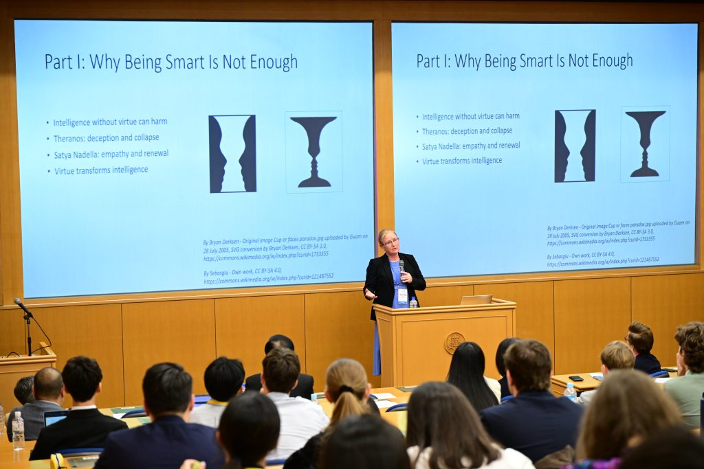 As a concrete example, Dr. Stres referred to the infamous Theranos scandal in Silicon Valley. Despite claims of technological breakthroughs, the absence of ethical grounding led to a massive collapse—an illustration of the reality that “knowledge and intelligence alone cannot bring happiness to people.” In contrast, she highlighted Microsoft as a company that has consistently respected culture and values while achieving sustainable growth, offering the audience a striking comparison.