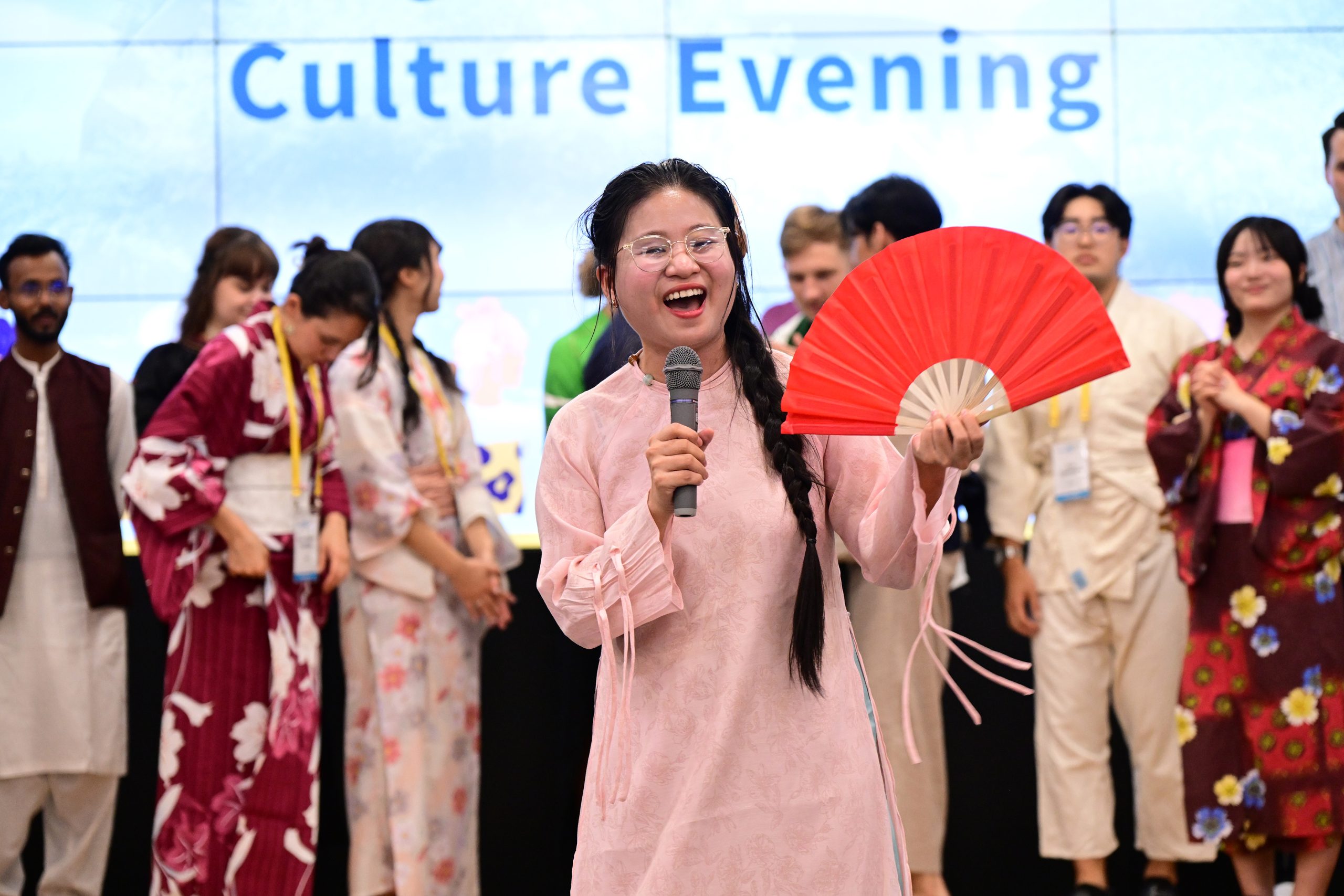 With friends representing more than 50 countries, the evening was full of music, laughter, and discovery. Participants learned a Romanian wedding dance, joined in a Japanese Bon Odori, and applauded each cultural performance with enthusiasm. Each presentation brought smiles and sparked curiosity, as young leaders eagerly stepped onto the stage to share a piece of their heritage.
