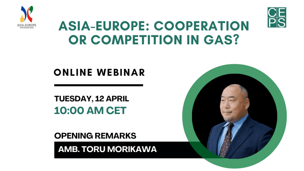 The Centre for European Policy Studies (CEPS) together with the Asia-Europe Foundation (ASEF) is organizing a webinar about Asia and Europe cooperation to ensure the smooth functioning of the gas market.