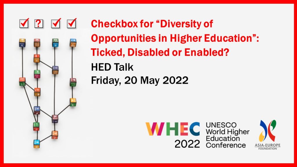 This online event is part of the official programme of the 3rd UNESCO World Conference on Higher Education (WHEC) taking place between 18-20 May 2022 in a hybrid format, online and in Barcelona, Spain.