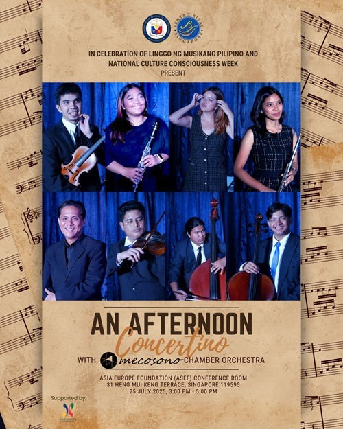 The evening’s repertoire will feature an engaging blend of Filipino Original Pilipino Music (OPM), classical works, jazz, tango and international selections. Highlights include compositions by JS Bach, Astor Piazzolla, Ennio Morricone, Ryan Cayabyab and a finale performance of “Home” by Dick Lee and Kit Chan—symbolically bridging Filipino and Singaporean cultural sensibilities.