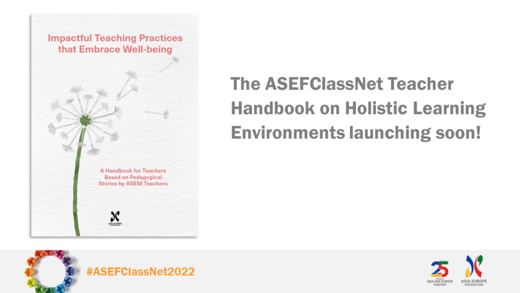 We are excited to announce that the ASEFClassNet Teacher Handbook on Holistic Learning Environment will be published in November 2022! The Handbook aims to empower K-12 teachers in the ASEM region and beyond to promote teaching in a Holistic way.