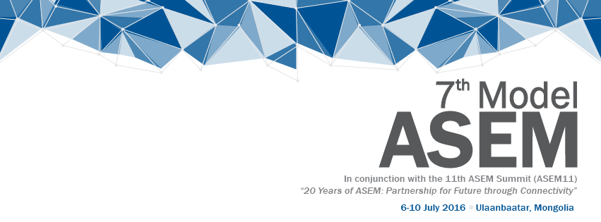 The 7th Model ASEM was a 3-day youth conference and political simulation of the actual Asia-Europe Meeting (ASEM) Summit. It was a platform for political debate and negotiation where over 150 participants from the 51 Asia-Europe Meeting (ASEM) countries had the possibility to experience Asia-Europe diplomacy through role-play exercises, practical trainings as well as meetings with the ASEM Leaders of today.