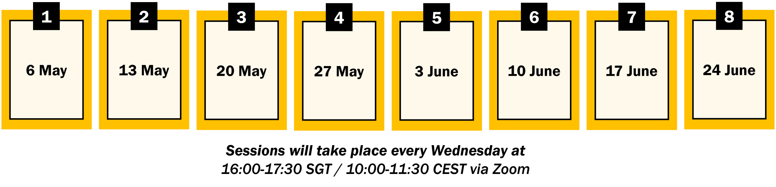 6 May to 24 June (8 sessions)
