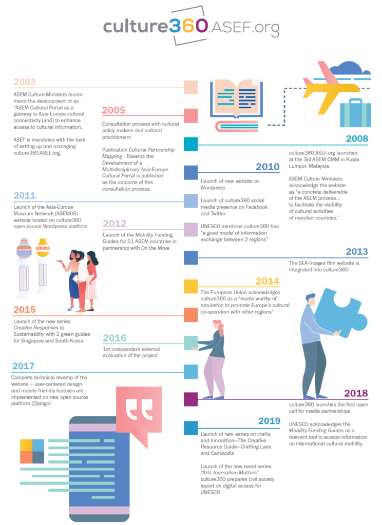 Since 2008, ASEF’s arts and culture website – culture360.ASEF.org – has been enabling public access to relevant digital information on arts and culture for individual artists, arts organisations and policymakers across the 51 countries of the Asia-Europe Meeting (ASEM) region. It remains the only website offering such a service in the ASEM context.