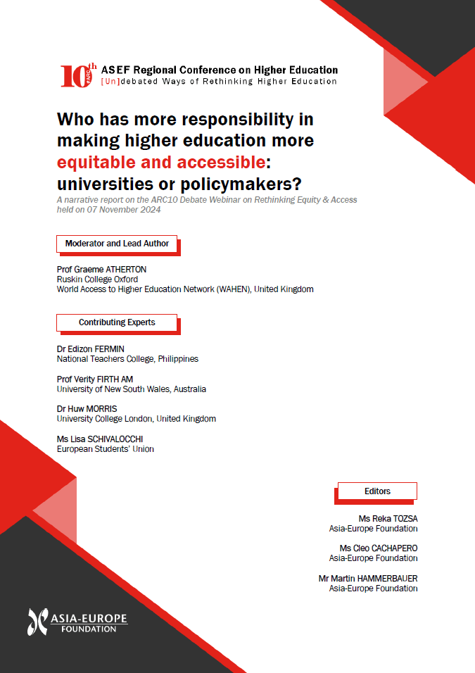 With the theme “[Un]debated Ways of Rethinking Higher Education,” our work for the 10th ASEF Regional Conference on Higher Education (ARC10) answers the call to join the discussion with a critical mindset and contribute to transforming the future of higher education in Asia and Europe as we navigate global developments that higher education must cope with.