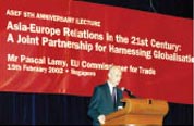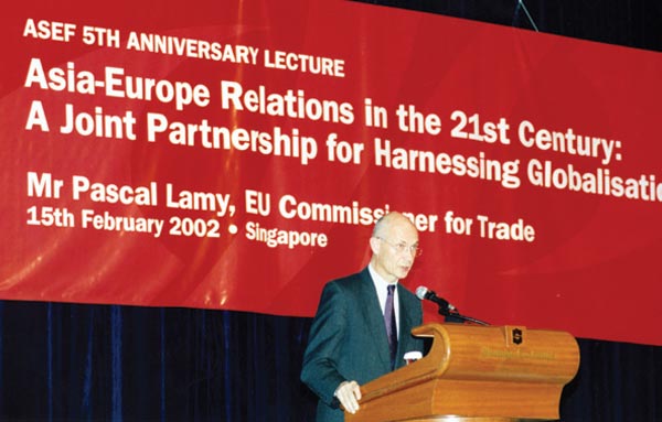 Left : Mr Pascal Lamy, EU Commissioner for Trade, at the ASEF 5th Anniversary Lecture in 2002.