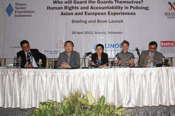 Heralding the launch of Good Policing: Instruments, Models and Practices, two public briefings were held on the topic in Brussels entitled “Quis custodiet ipsos custodes? Asian and European Experiences in the Security Sector”, and Jakarta under the heading, “’Who will Guard the Guards Themselves’: Human Rights and Accountability in Policing”. The latter represented a collaboration with the United Nations Office on Drugs and Crime (UNODC) and the Commission for the Disappeared and Victims of Violence (KONTRAS). It was attended by Commissioner General Imam Sujarwo of the Indonesian National Police who praised the publication, which is being translated into Bahasa Indonesia by the Jakarta office of the Hanns Seidel Foundation, as a useful guide for Indonesian police academies.